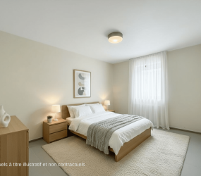 Livraison attendue été 2026. Régime de vente mixte : TVA sur la construction et droits d’enregistrement sur la quote-part terrain. (Visuels à titre illustratif et non contractuel)