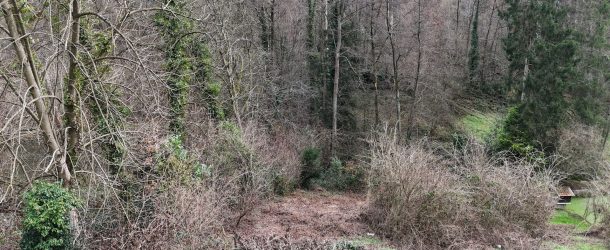 La parcelle se caractérise par une légère pente naturelle, offrant un potentiel architectural intéressant, et s’étend jusqu’à un petit bois en fond de terrain, garantissant intimité et charme. La présence d’un petit ruisseau en bas du terrain ajoute une touche bucolique.