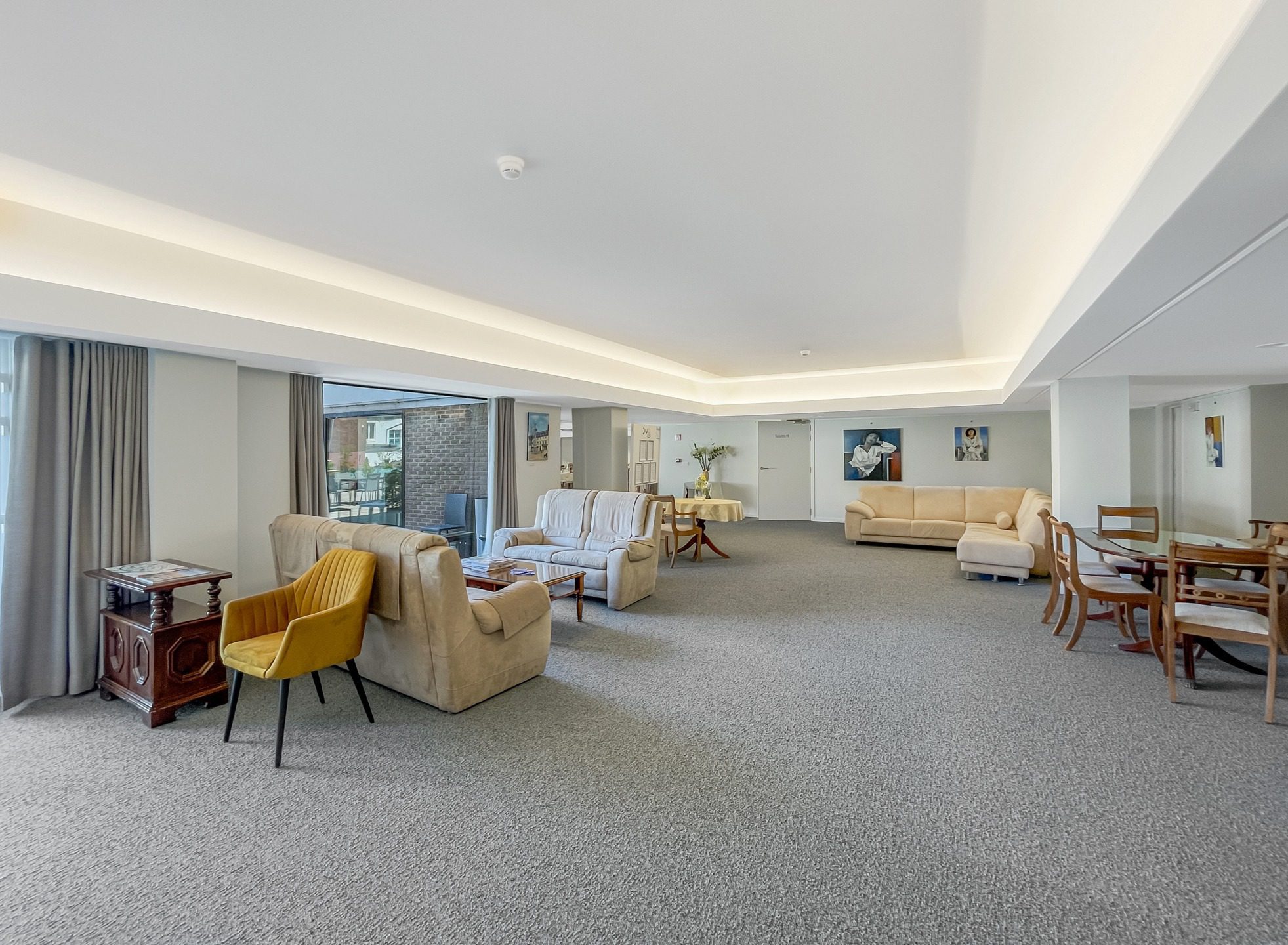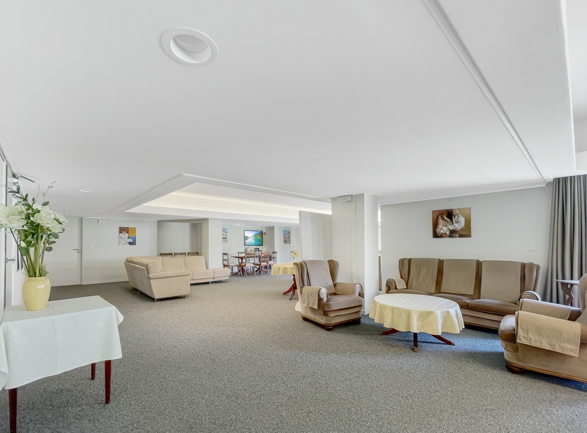 – Espaces communs conviviaux : salon, restaurant, terrasses, bibliothèque, salon de coiffure, animations…