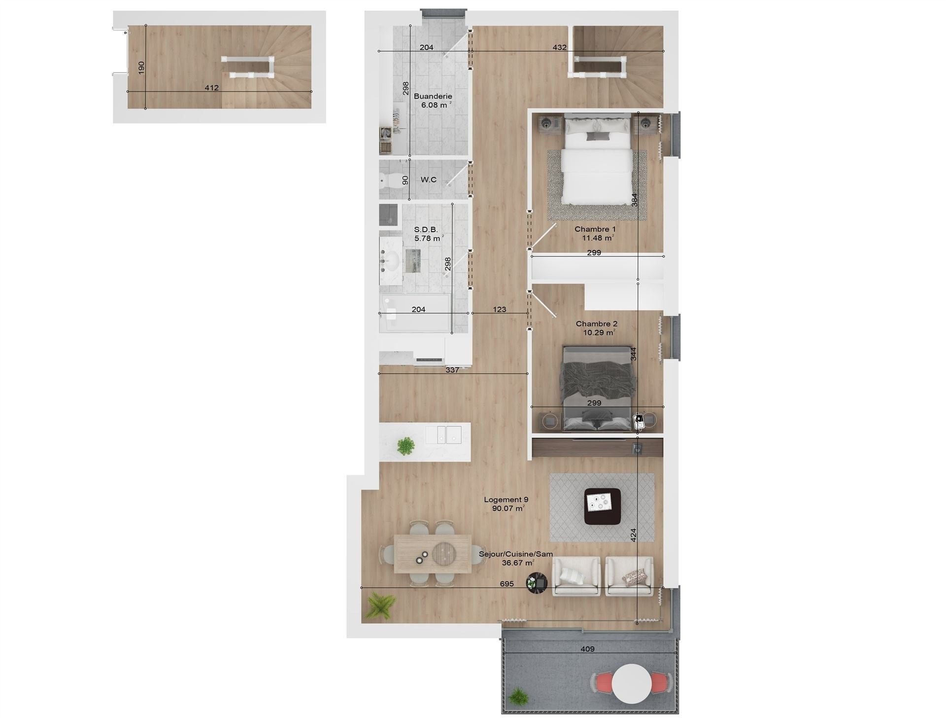 Découvrez cet appartement de 94m² implanté dans un immeuble à l’architecture très contemporaine. Vous serez séduits par son environnement rare, au calme et sa proximité immédiate à toutes les facilités. Cet appartement, avec entrée séparée, offre un hall d’entrée au rez-de-chaussée. Vous trouverez ensuite au 1er étage, un spacieux séjour avec cuisine ouverte de 36m², deux chambres, une salle de bain moderne et une buanderie. Il dispose également d’une terrasse orientée sud-est, pour profiter d’un espace extérieur agréable. Emplacements de parking extérieurs en supplément.