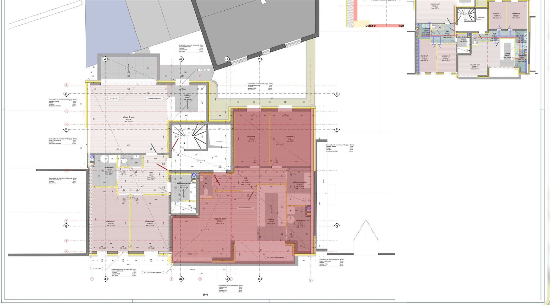 Eléments de confort : châssis en alu, VMC double flux, chauffage sol au gaz, …
