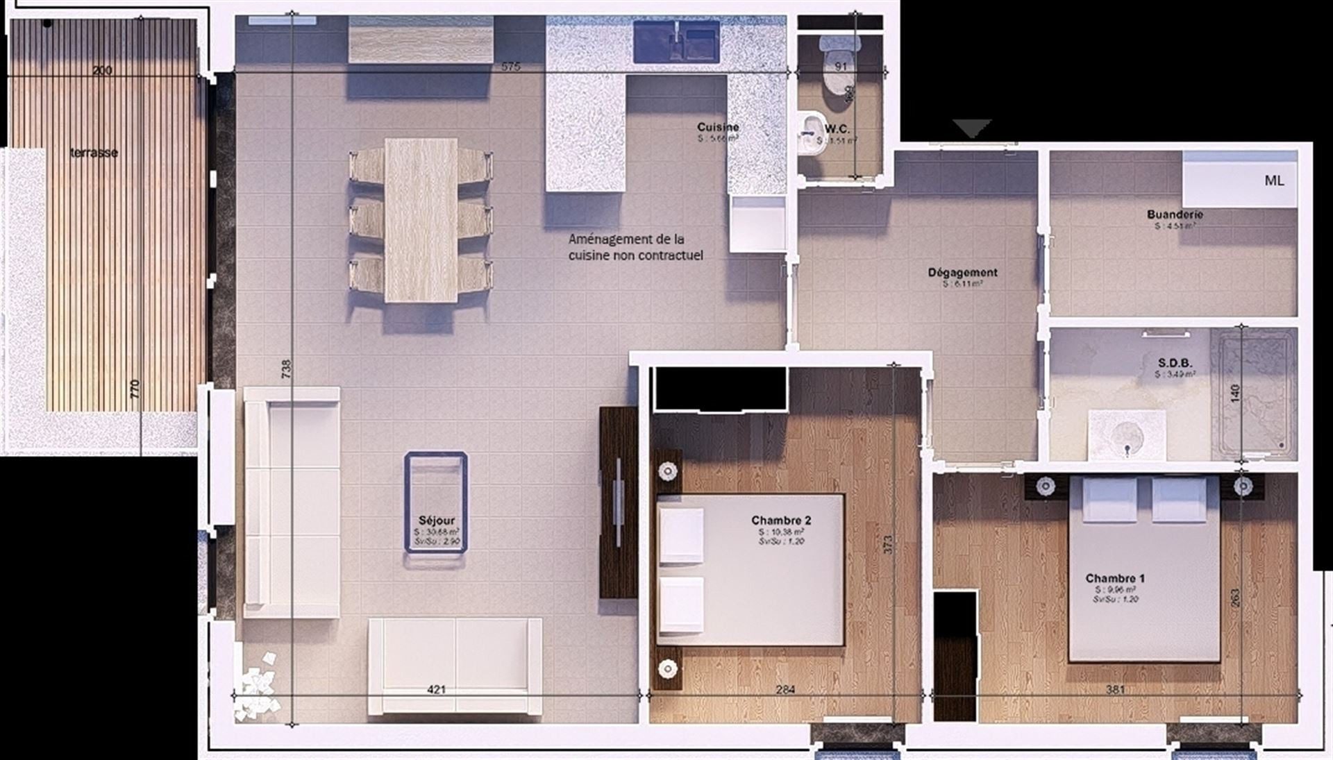 Appartement 2 chambres de 80m² + Balcon