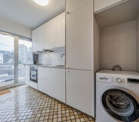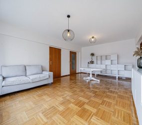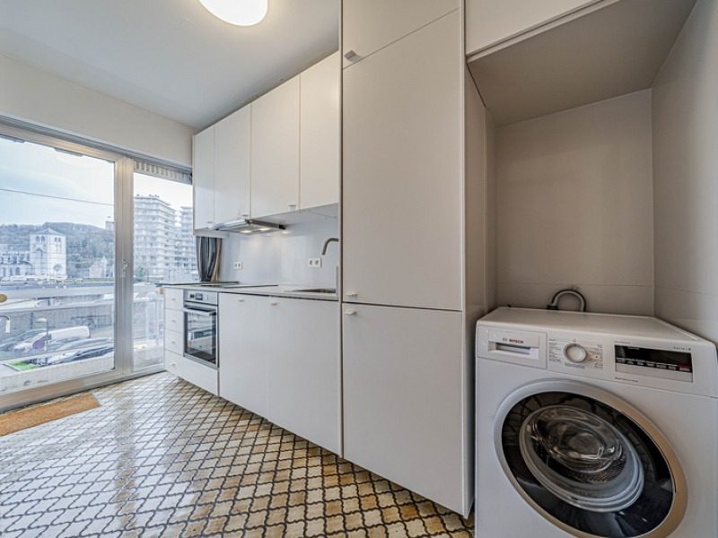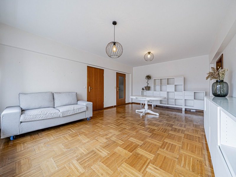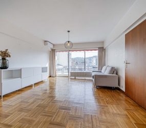 Depuis un ascenseur digne des anciens films de science-fiction jusqu’à la vue depuis le salon et les chambres d’une Collégiale vieille de plus de 700 ans, sied au deuxième étage d’une bâtisse bien assise à proximité de la cité administrative de Huy, un appartement, qui, d’après les dires, n’envie rien à d’autres. Et pourquoi, nous direz-vous ? Parce qu’au delà de sa vue, l’appartement jouit de deux autres atouts fort de leurs rares qualités : Un plancher massif en bois de chêne à bâtons rompus dans le salon et un carrelage en mosaïque des années septante de tons beiges écrus et marrons dans la cuisine.