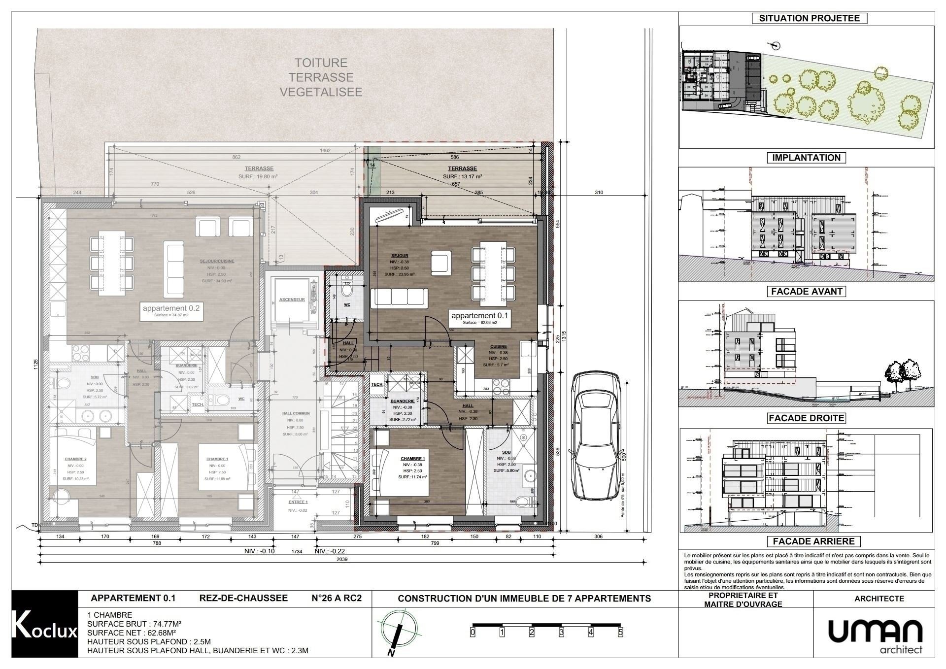 Éléments de confort : Chauffage sol au gaz, châssis double vitrage alu, VMC, … Peintures intérieurs inclues.