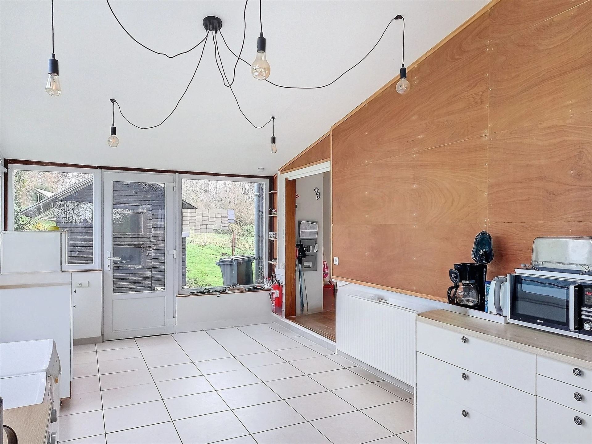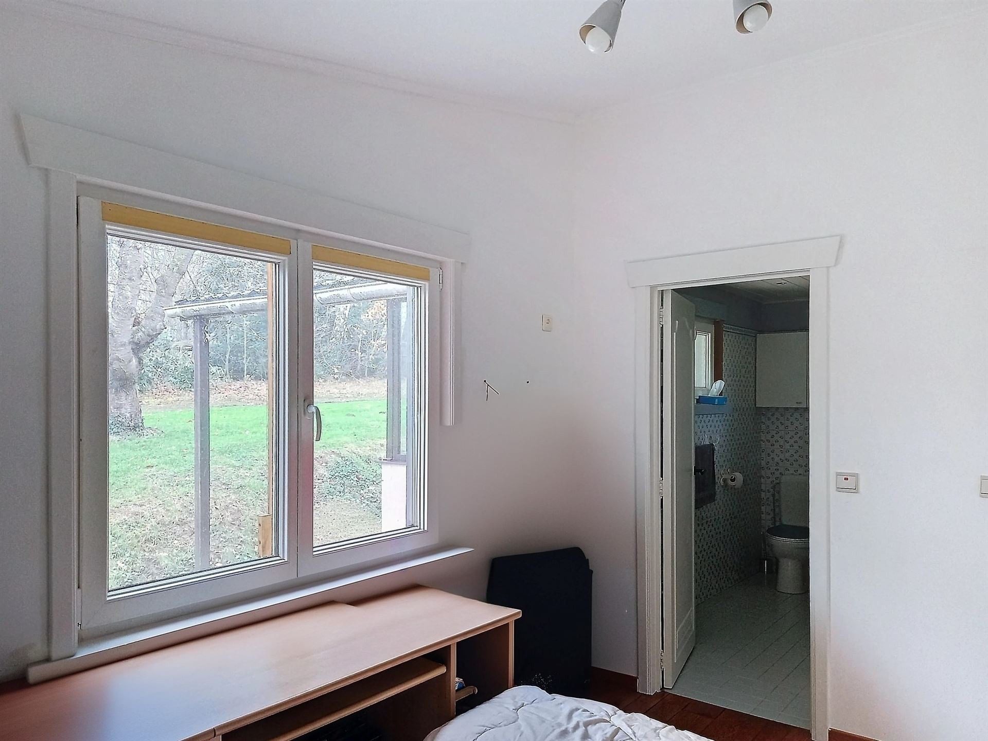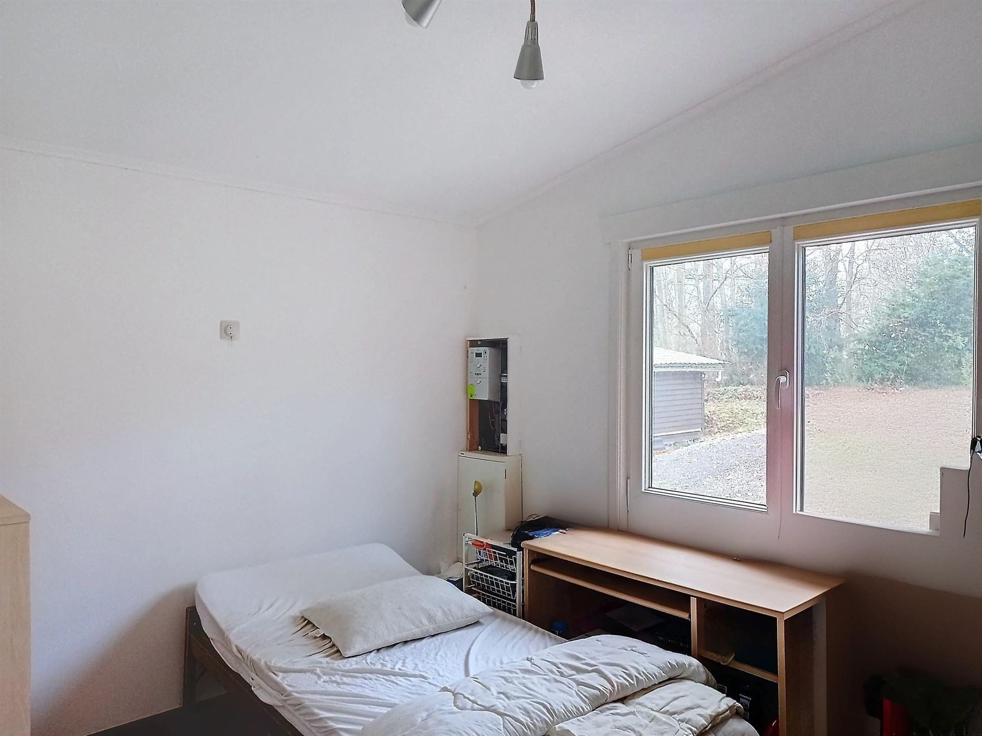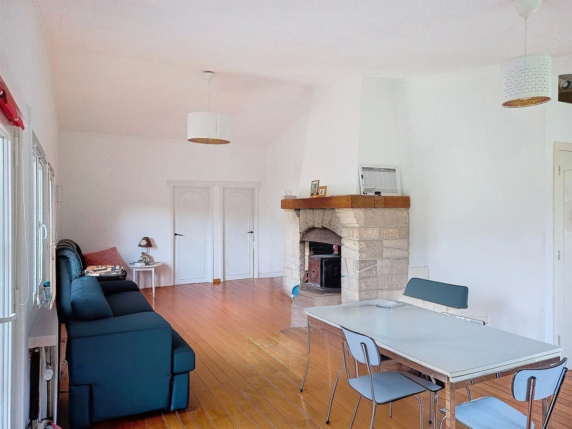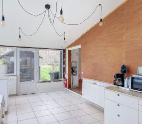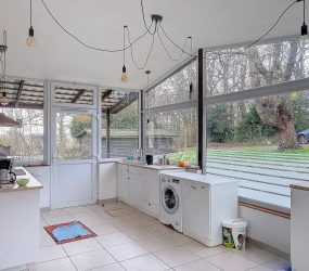 Il se compose d’une cuisine, un salon et salle à manger, 2 WC, une salle de douche, une salle de bain et 2 chambres. Un garage fermé. Un abri de jardin