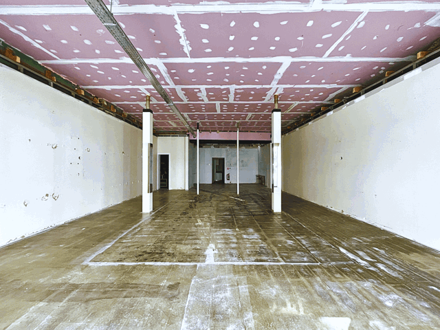 – Un local arrière avec rangements et sanitaires.