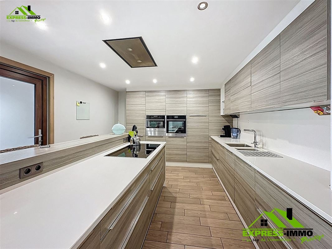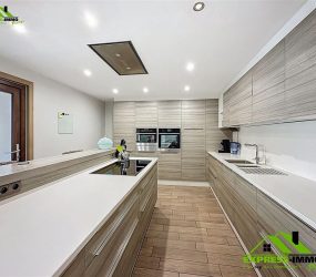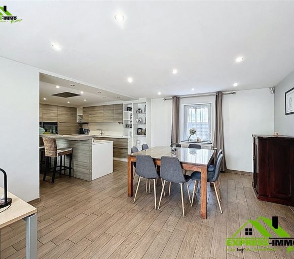 Niv -rdc: Hall d’entrée, salon séparé de 35 m² ,cuisine full équipée donnant sur la salle à manger, buanderie.