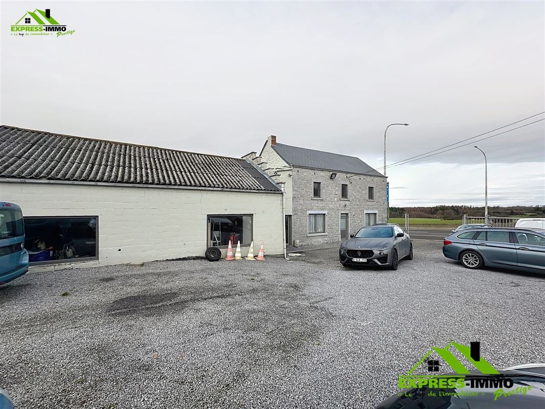 Les atouts du bien: visibilité, châssis Pvc double vitrage, cc central gaz pour la propriété, chauffage mazout pour l’atelier, système d’alarme, permis d’exploitation…