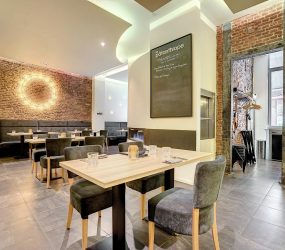 Composé d’un restaurant de +/-160m2 m² (50 couverts intérieurs et 40 couverts en terrasse) et composé comme suit : Rez-de-chaussée : espace restaurant à la décoration très soigné de 70 m² avec un grand Bar de 11m2 donnant accès à une cave de 39m2. A l’étage, un palier distribue une cuisine fonctionnelle tout équipée de 20m2, une salle de préparation de 17m2 avec chambre froide, un bureau de 12m2, une salle de douches de 2m2 ainsi qu’un accès aux 2 WC’s clients homme/femme et un débarras.