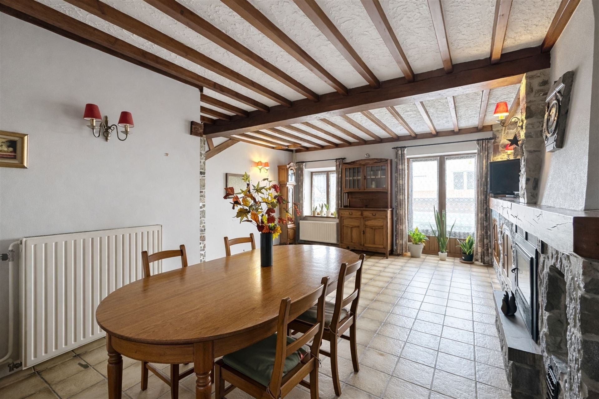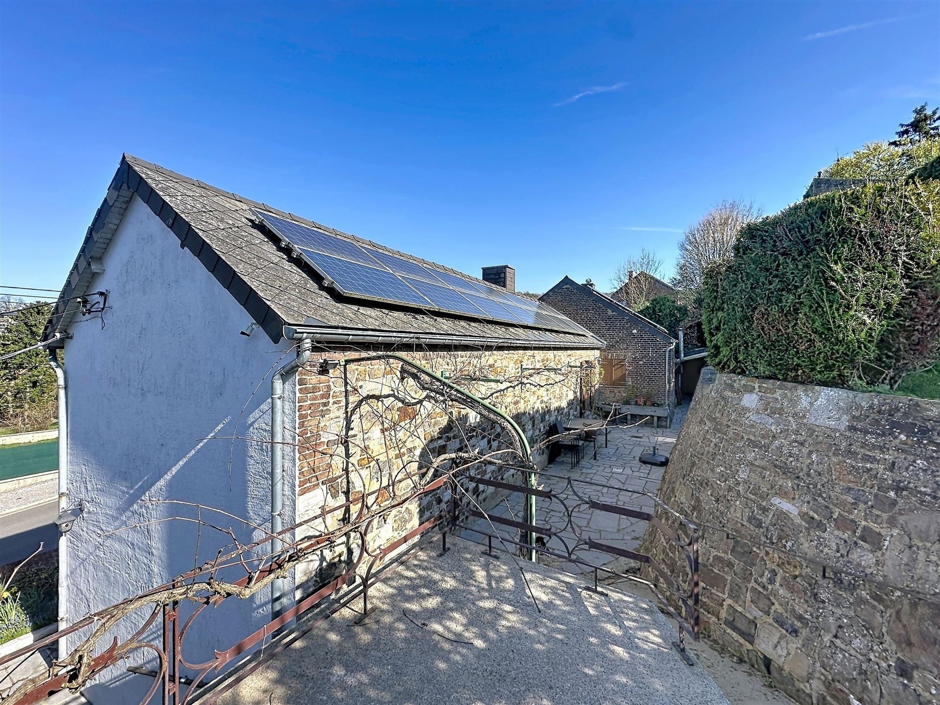 Eléments techniques : chaudière a mazout de 2001, châssis double vitrage en bois de 2008, 22 panneaux photovoltaïques, citerne eau de pluie non raccordée, égouts, système d’alarme.