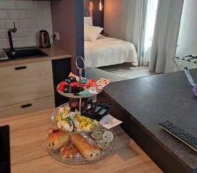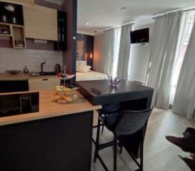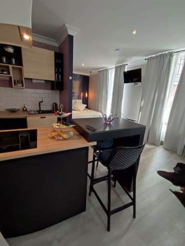 2. Au 1er étage : studio en location sous forme de gîte citadin 3 épis. Séjour avec coin cuisine et chambre. 1 salle de bain comprenant douche italienne. Rendement estimé à min 18000€/an.
