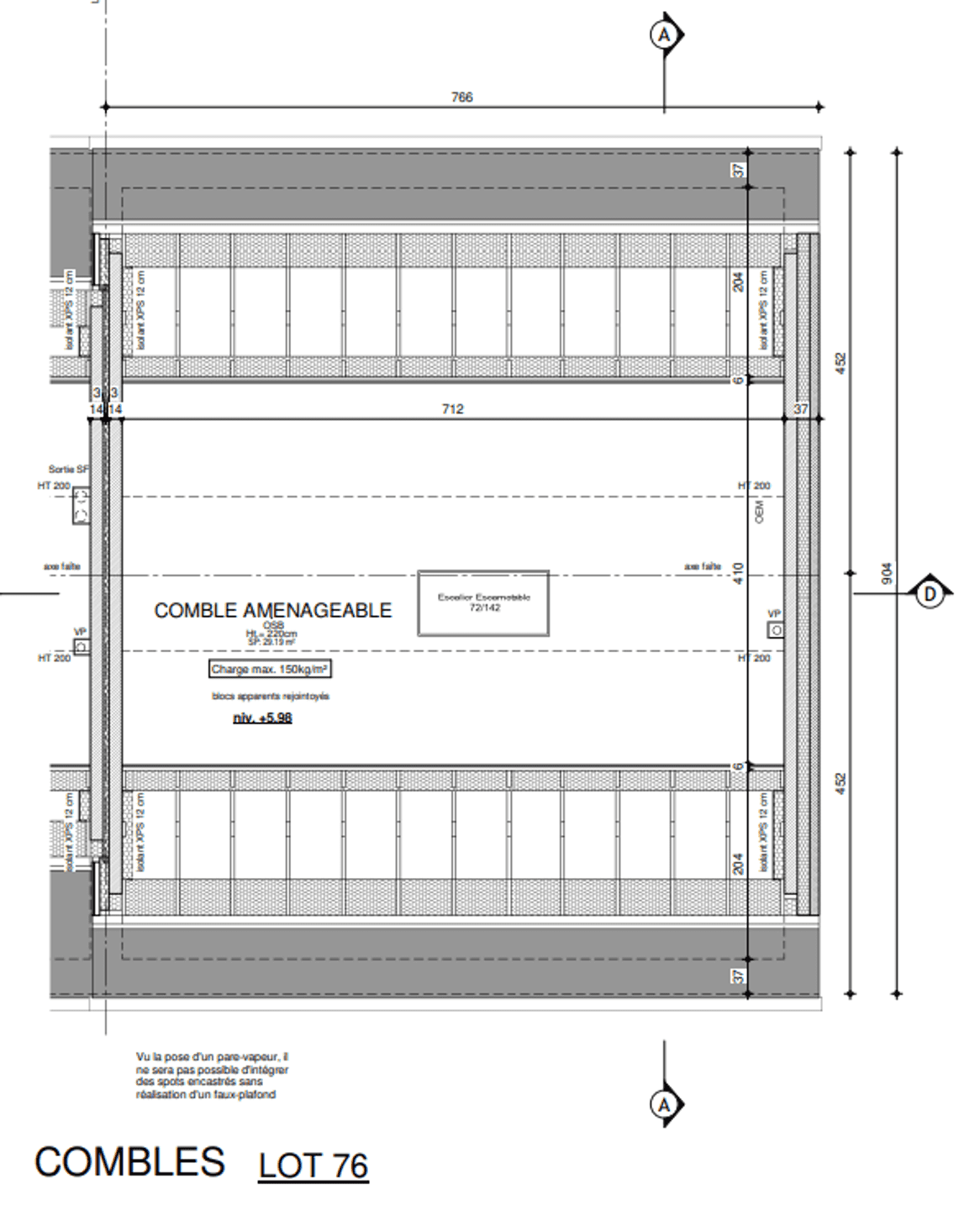 Un grenier de rangement est également accessible via un escalier escamotable depuis le garage.