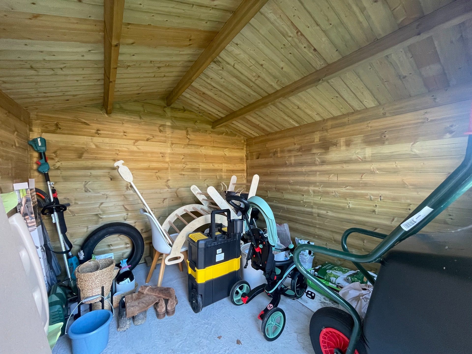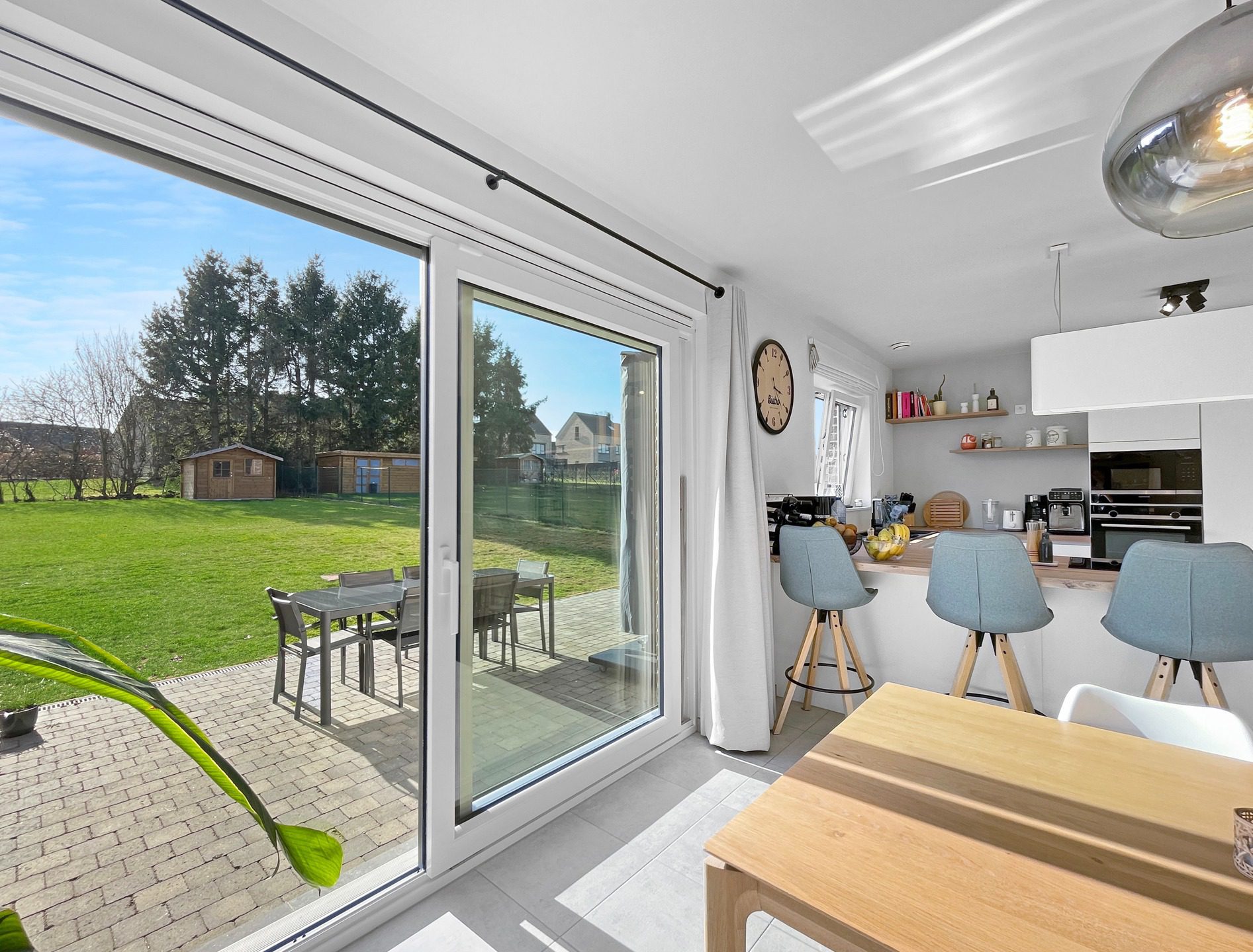Un jardin clôturé avec une grande terrasse idéalement orientée sud-ouest ainsi qu’un spacieux abri de jardin complètent l’ensemble.