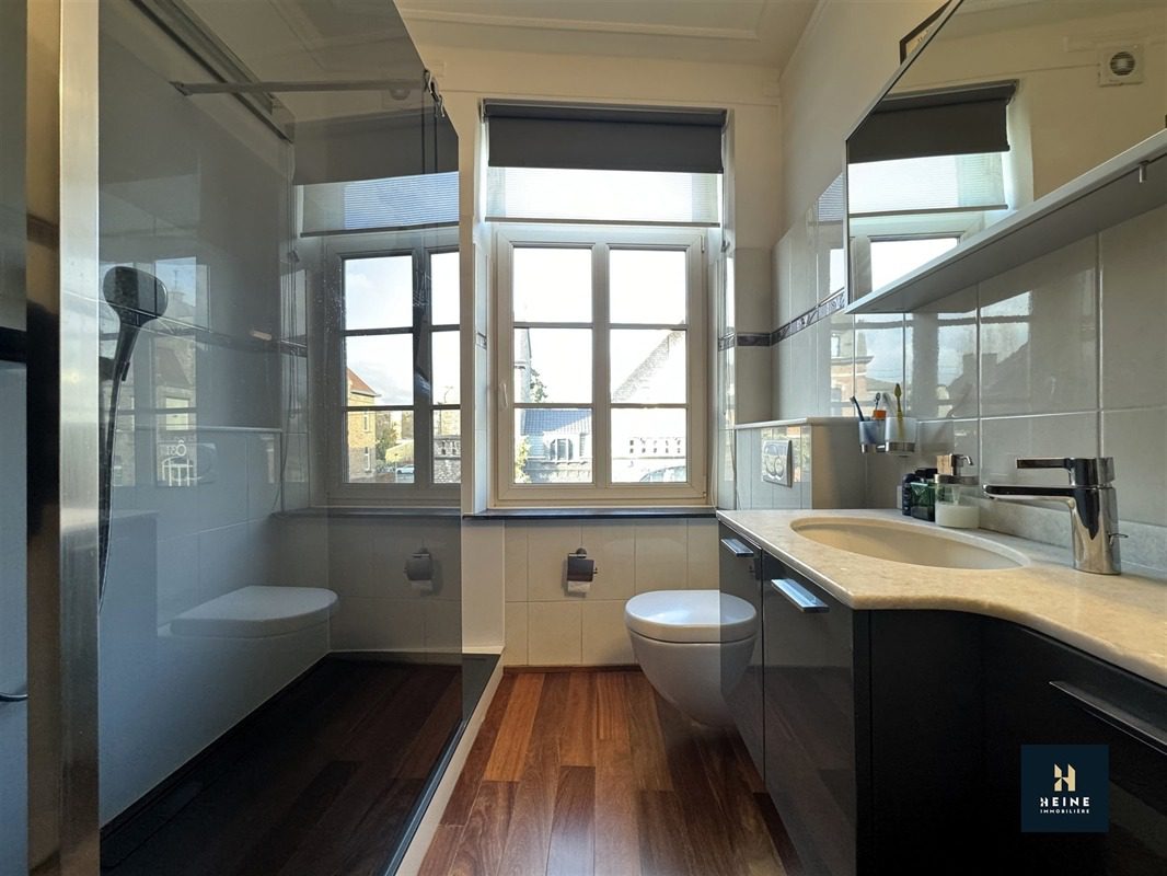 OPPORTUNITE RARE à na pas manquer pour cette magnifique maison de Maître située en plein centre-ville, à proximité immédiate de toutes les commodités. Alliant charme, matériaux de qualité et volumes, laissez vous séduire par ce bien d’exception. Au RDC, un spacieux hall d’entrée dessert le séjour et la salle à manger. Une cuisine entièrement équipée donnant accès aux extérieurs ainsi qu’un WC complètent ce premier niveau. Au 1er étage, un hall de nuit, deux belles chambres et une SDD. Au second, un hall, une grande chambre et deux greniers aménageables selon les besoins. A l’extérieur, une magnifique et spacieuse terrasse avec son point d’eau … Des caves pour +/- 42m² terminent sa description. A VISITER sans plus tarder ! FO àpd 399.000€ sous réserve d’acceptation des propriétaires.