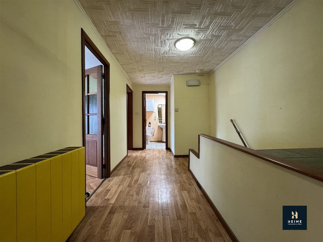 1ère étage: Hall de nuit (9,75m²), deux chambres (15,85m²; 16,30m²), SDB (10m²), débarra (8,35m²), pièce d’eau/buanderie (4,50m²)