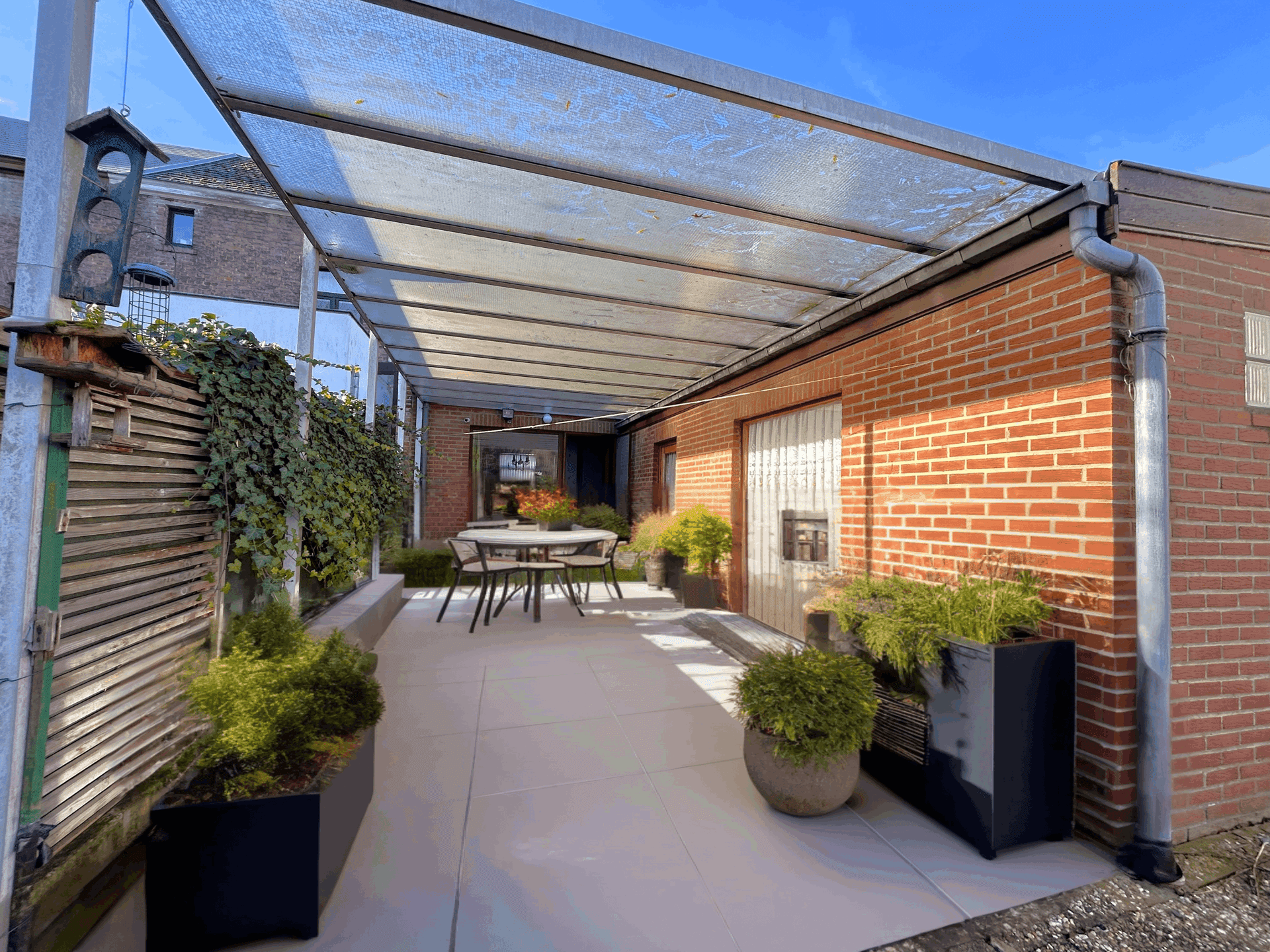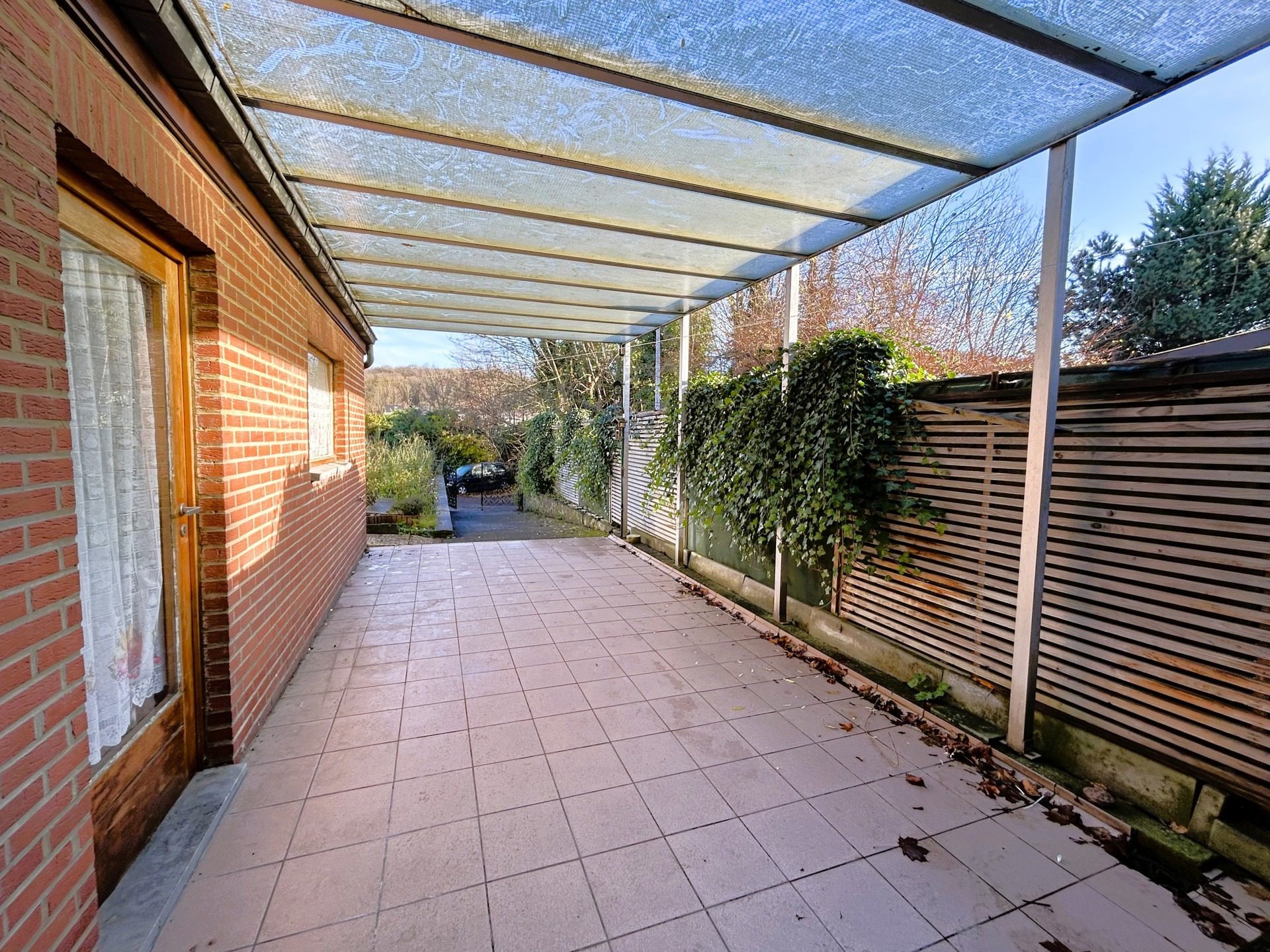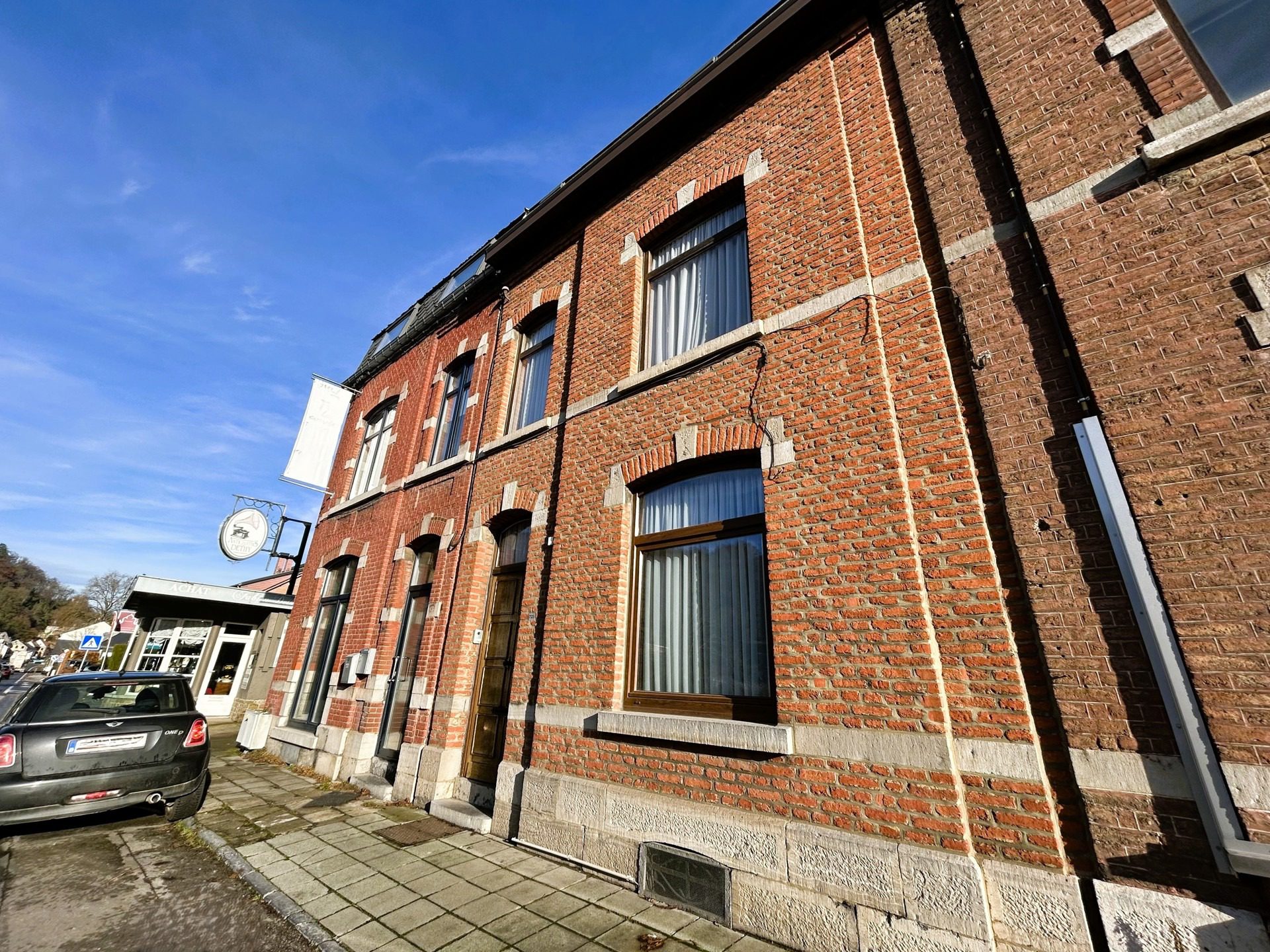 À l’extérieur, vous profiterez d’une grande terrasse couverte donnant sur un jardinet, d’un accès direct au halage et de la possibilité de stationner plusieurs véhicules grâce à un accès supplémentaire par celui-ci. Sympathique maison saine à remettre au goût du jour.