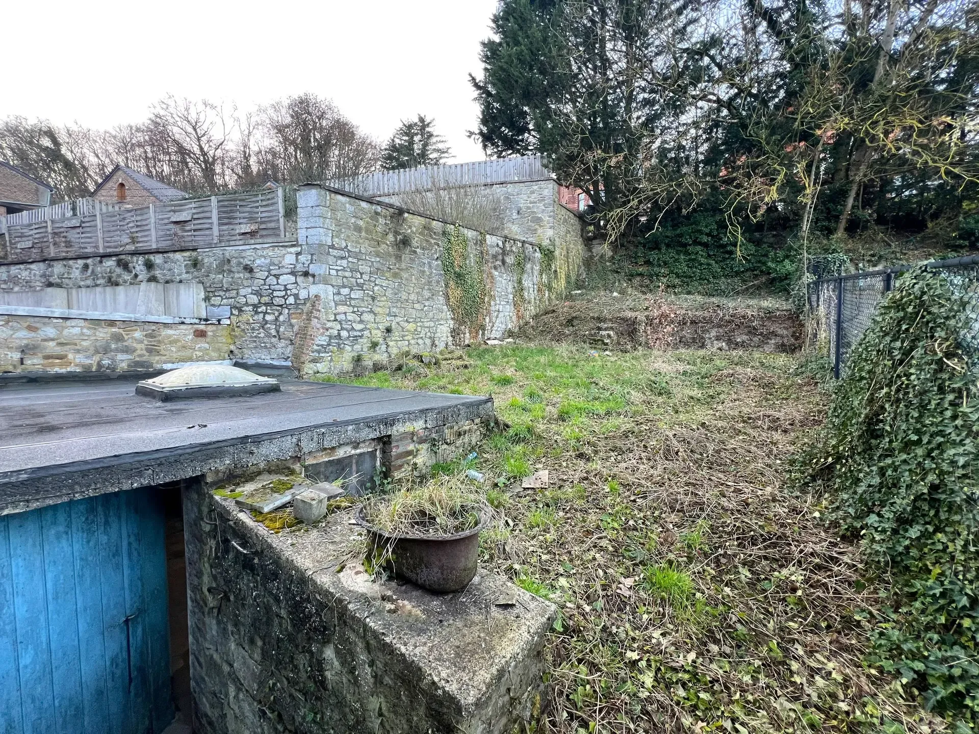 – Rez : salon, salle à manger, cuisine, salle de bain, wc, couloir, atelier/buanderie, accès au jardin