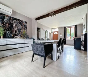 Située dans un quartier calme tout en restant à proximité des grands axes, cette spacieuse maison 4 façades offre de nombreuses possibilités d’aménagement. Avec une superficie habitable de 160 m², elle se compose au rez-de-chaussée d’une chambre, d’une salle de bain, d’un salon, d’une salle à manger ainsi que d’une cuisine avec accès direct vers le garage. À l’étage, vous trouverez trois chambres, un dressing, une salle de bain et un grenier aménageable de 30 m carré, idéal pour y créer une chambre supplémentaire, un bureau ou encore une salle de jeux. Le tout est implanté sur un terrain de 8,43 ares, offrant un bel espace extérieur. Des panneaux solaires ont été installés récemment, un véritable atout pour réduire les charges énergétiques. Des travaux sont à prévoir, mais cette maison présente un très bon potentiel pour devenir un véritable cocon familial ou un beau projet d’investissement. Faire offre à partir de 199.000€ (sous réserve d’acceptation des propriétaires).