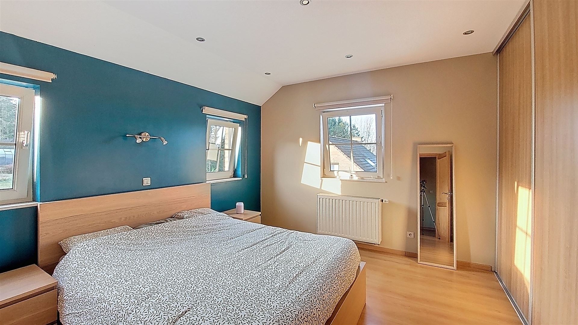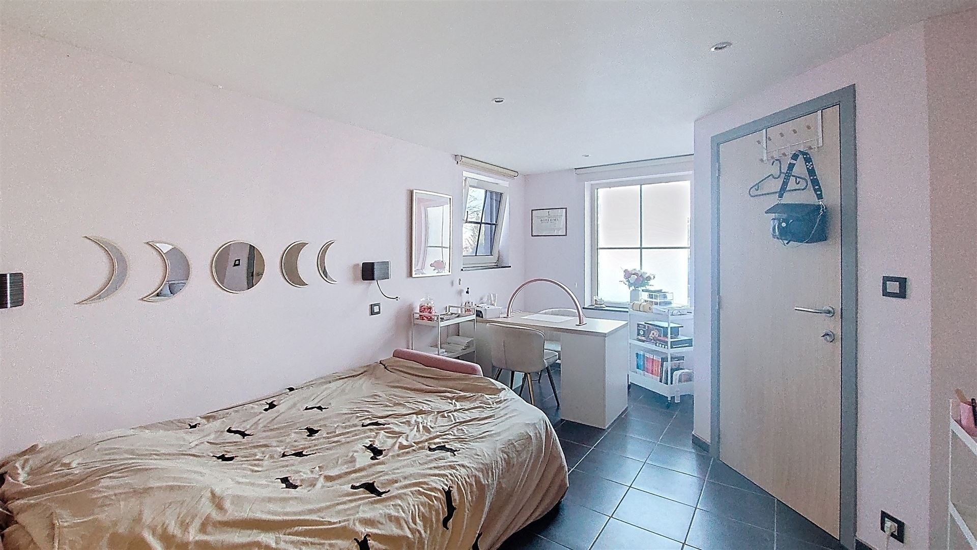 Au niveau inférieur (rez-de-rue) se trouve une chambre avec salle de douche (ou idéal également comme bureau – entrée indépendante existante).
