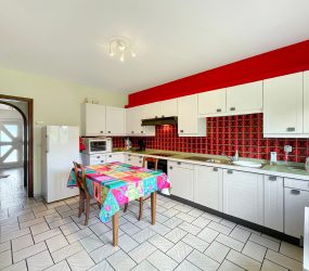 – Rez-de-chaussée : spacieux hall d’entrée avec coin vestiaire et toilette indépendante, lumineux séjour – salle à manger agrémenté d’un cassette à bois, et cuisine semi-équipée.