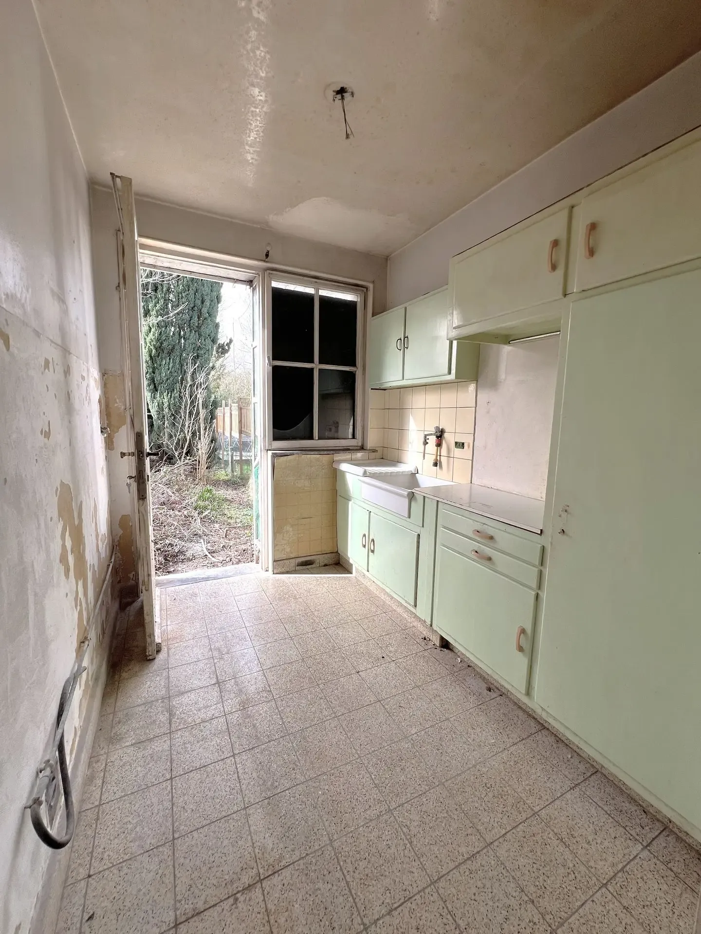 La maison nécessite une rénovation globale, ce qui en fait un bien parfaitement adapté à un projet de rénovation ambitieux, que ce soit pour une occupation personnelle ou une mise en location, ainsi qu’à un entrepreneur habitué aux chantiers.