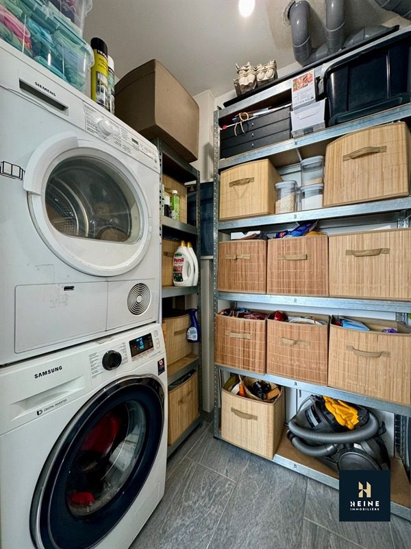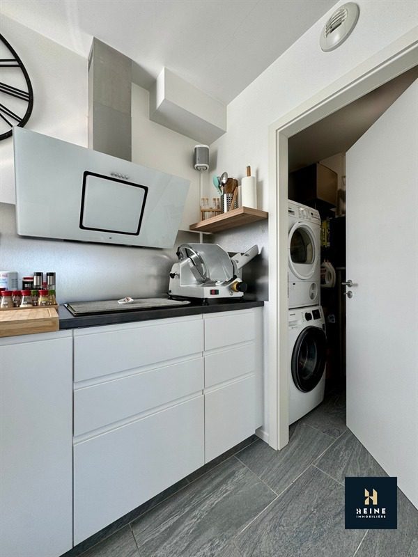 Cuisine : Équipée, meublée, simple évier, taques vitro, hotte, four, lave-vaisselle, frigo + congélateur