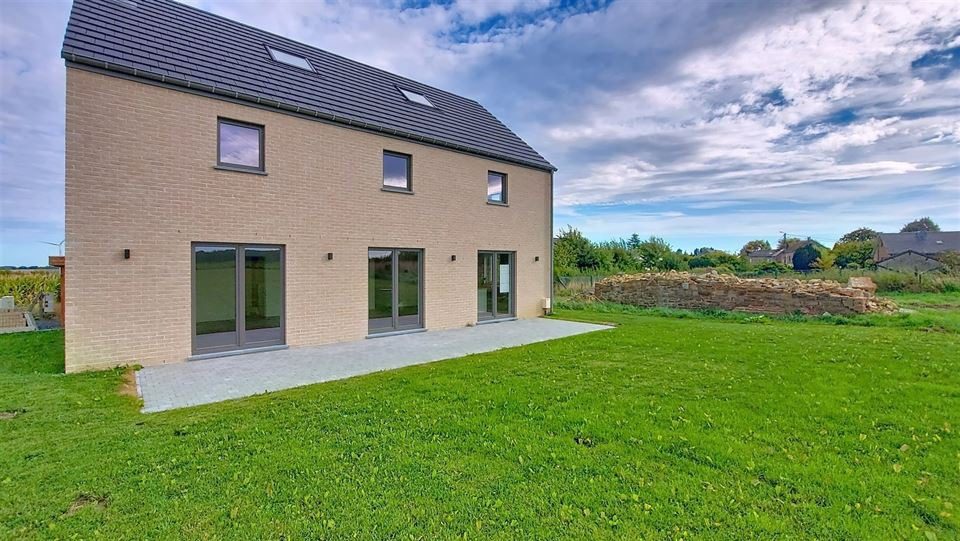 La maison se compose au rez-de-chaussée, d’un hall d’entrée avec wc, un espace séjour et cuisine entièrement équipée type américaine, un bureau et une buanderie. A l’étage se trouvent un hall de nuit donnant sur une suite parentale (+/-21m²) avec salle de douche et coin dressing, 2 chambres (+-16m² chacune) et une salle de bain complète. Wc séparé. Au second étage s’ouvre sur un grand espace à terminer (chambres ou autres). Car-port. Magnifique jardin avec terrasse aménagée.