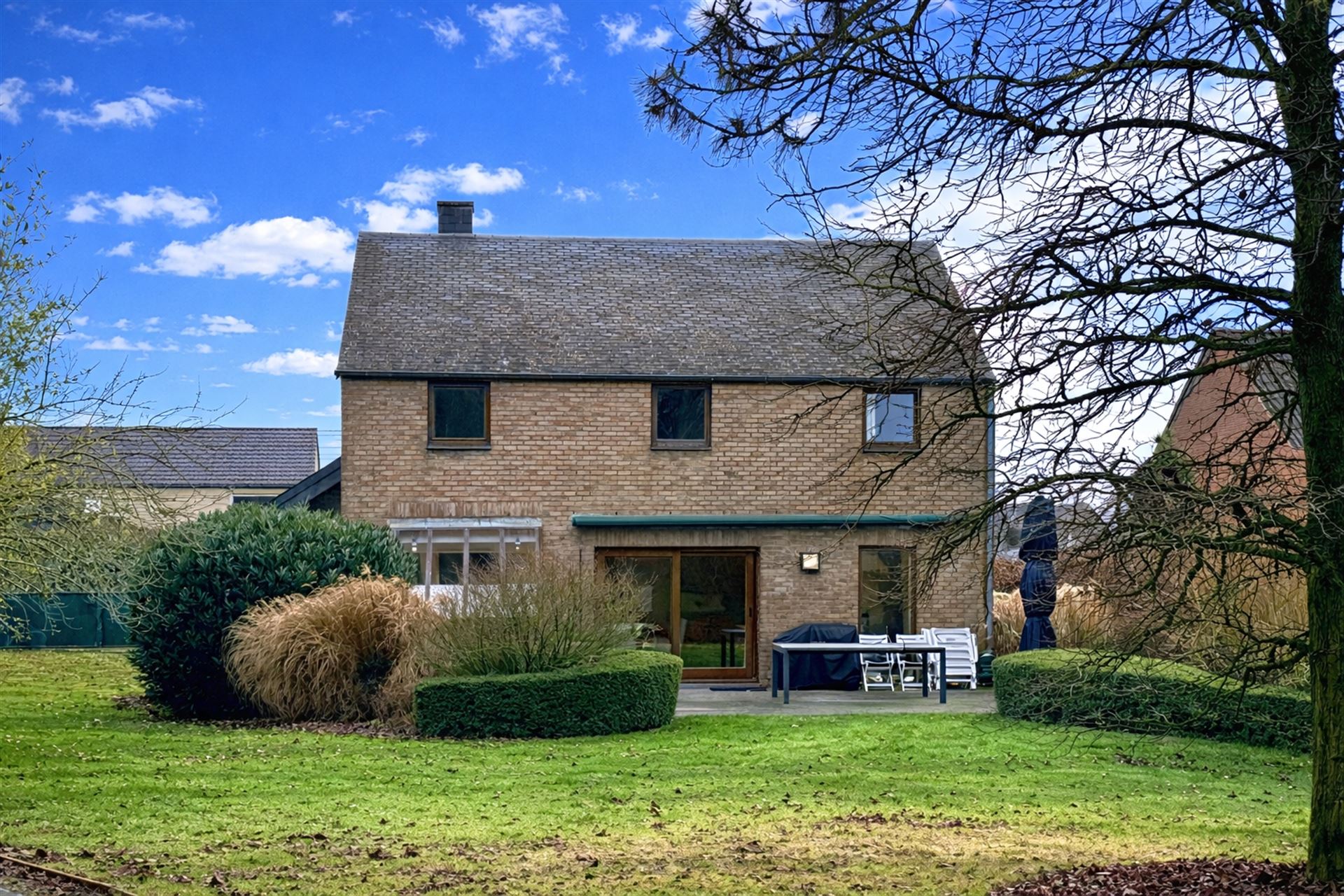 À l’extérieur, vous profiterez d’un beau jardin d’environ 17 ares, entièrement clôturé et agrémenté dune terrasse, d’un abri de jardin et dune serre.