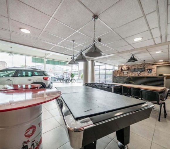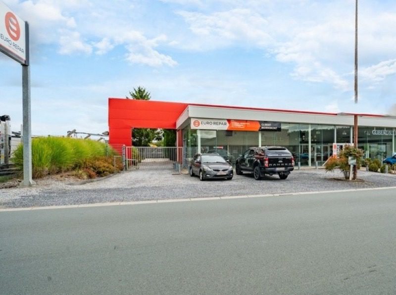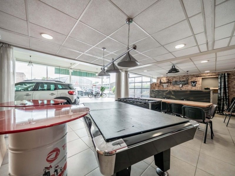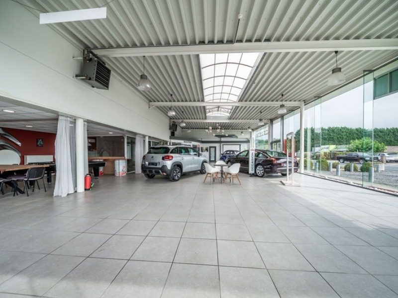 Concession automobile, avec showroom de 240², 4 bureaux, carrosserie de 330², cabine de peinture. Parti de gauche d’un bâtiment de 1390m² avec un garage automobile. Surface totale modulable de 575m² avec parking avant pour les clients et arrière pour le personnel. Visite sur rendez-vous à l’adresse gvp@color-immo.be ou 0479/98.18.48.