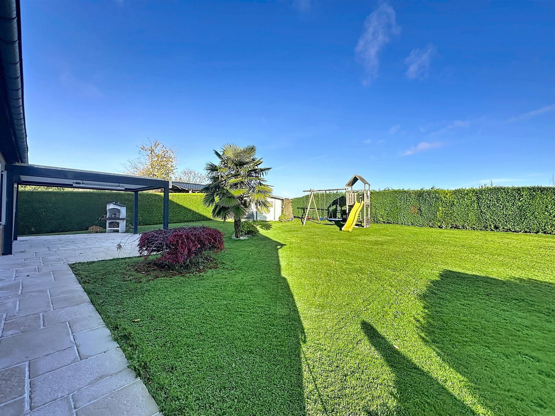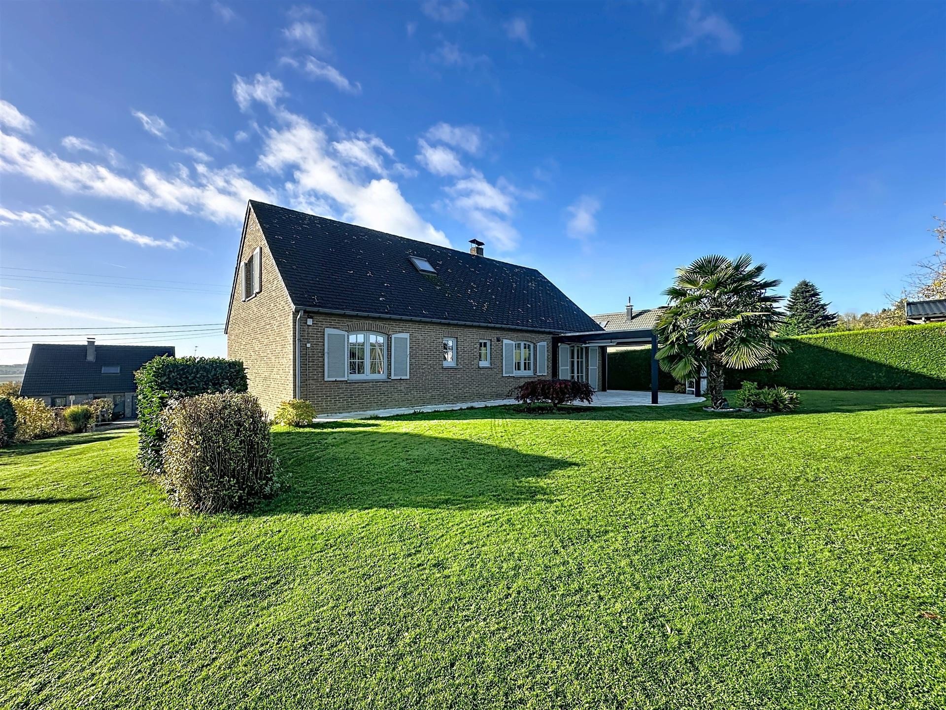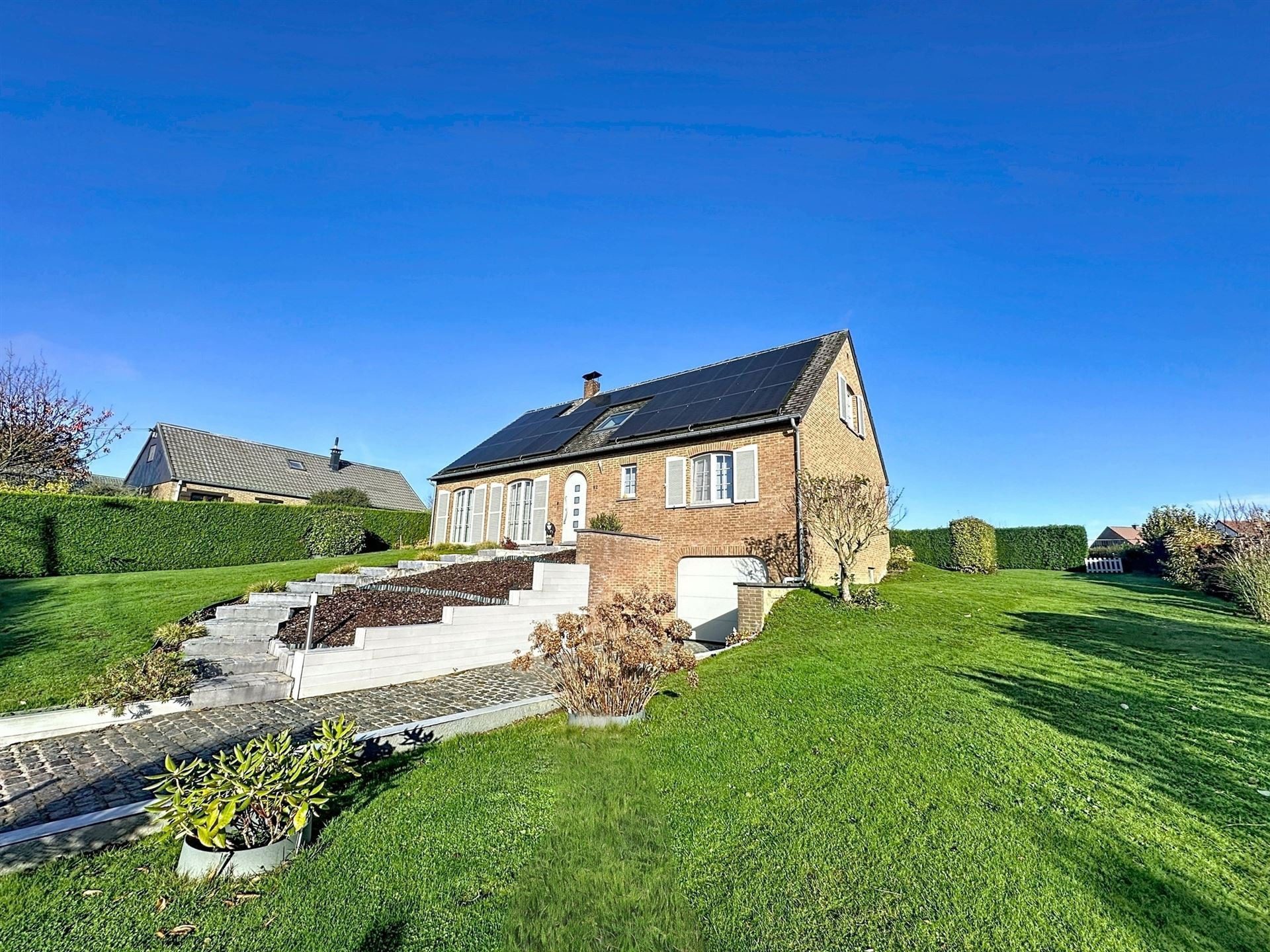 Son terrain de 8 ares 90, joliment aménagé, est agrémenté d’une terrasse avec pergola (screens électriques) et est très intimiste. Caves sous toute la superficie habitable avec une cave a vins et un garage (Possibilité d’y aménager un espace professionnel). Grenier de rangement.