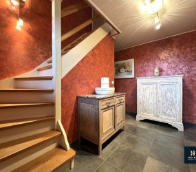 Idéalement située dans le charmant village de Couthuin, dans une rue calme, à moins de 5 min de la E42 et à 10 min de Huy et d’Andenne, villa 4 façades sise sur un magnifique terrain entretenu et aménagé de +/- 10 ares. Elle se compose au RDC, d’un hall d’entrée avec WC séparé, un spacieux et lumineux séjour avec cuisine-équipée ouverte d’une superficie de 50m² ainsi qu’une chambre avec salle de douche et une buanderie/chaufferie. Au premier étage, un hall de nuit desservant 3 belles chambres et une salle de bain avec WC. Un grenier aménageable, un passage latéral, de nombreuses places de parking, un car-port, une pergola bioclimatique, un point d’eau/terrasse et un abri de jardin terminent la description de cette superbe villa très bien équipée. Niv équipements: Électricité conforme (2048); CC hybride (mazout + PAC); Châssis DV PVC; Toiture en tuiles terre cuite isolée; 22 panneaux photovoltaïques. PEB: B – Faire offre à partir de 399.000,00€ ss rés. d’acceptation des propriétaires.