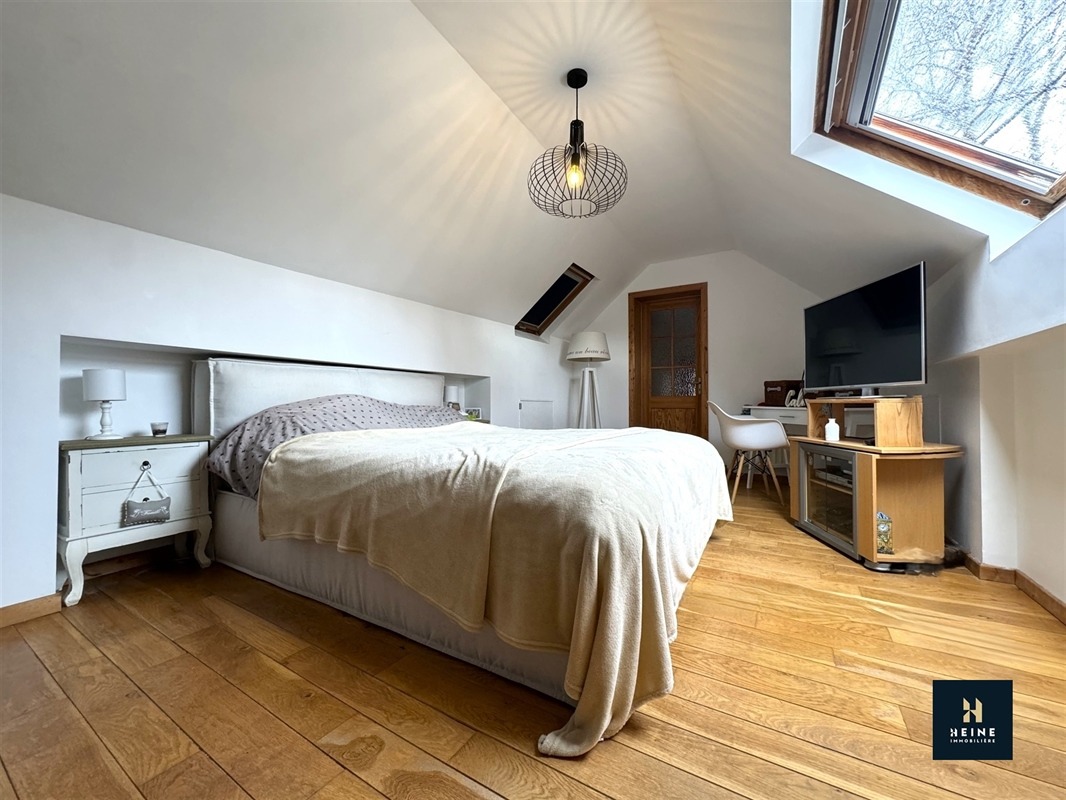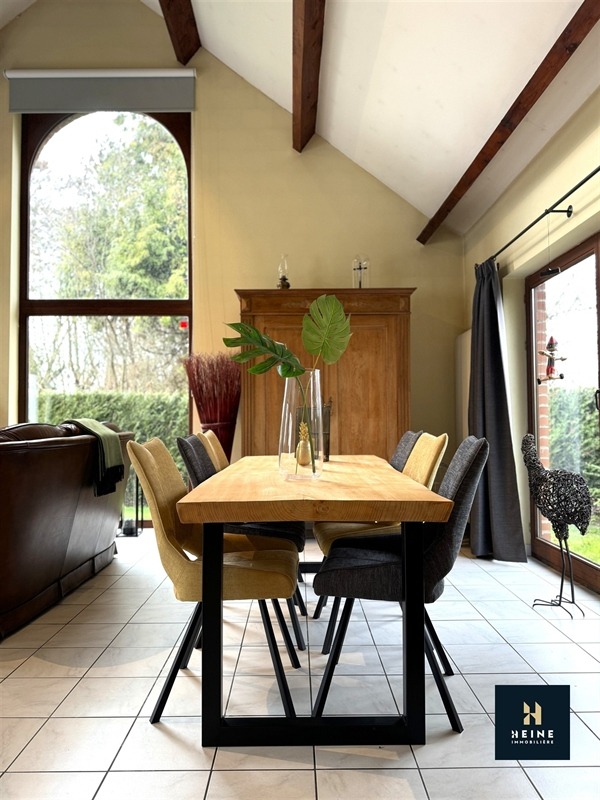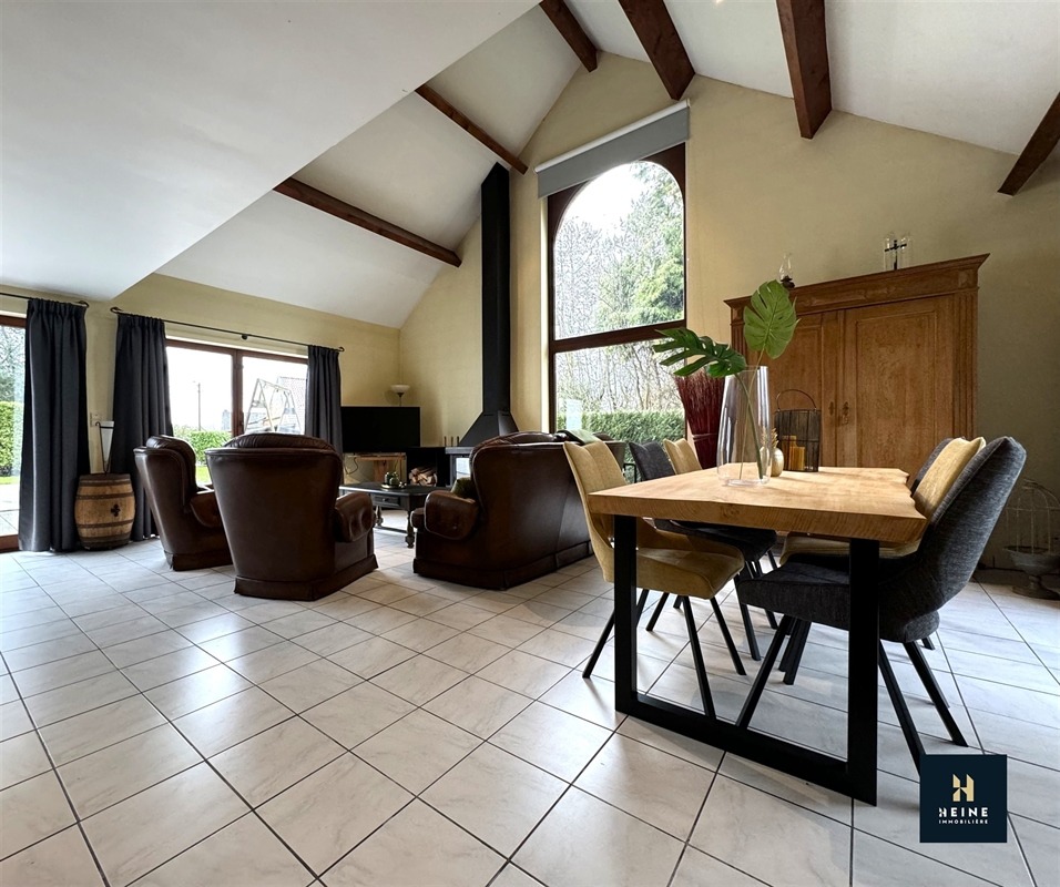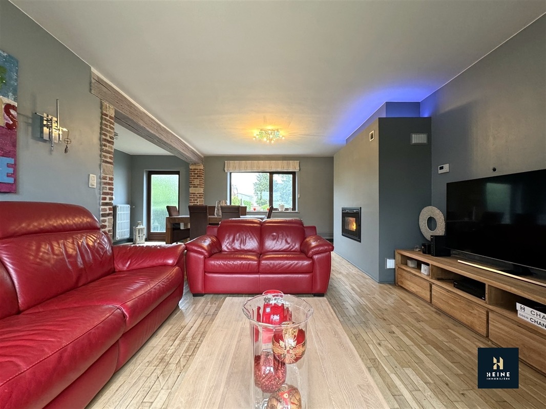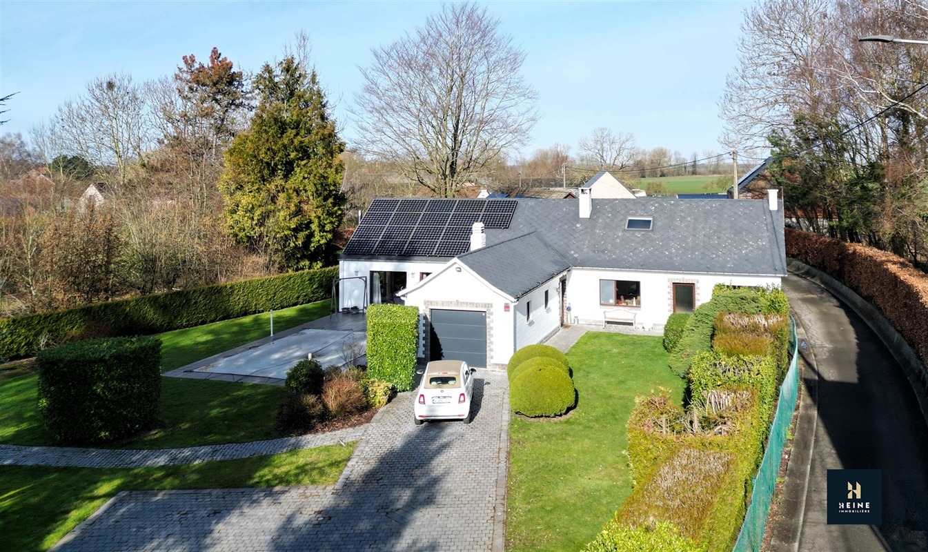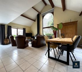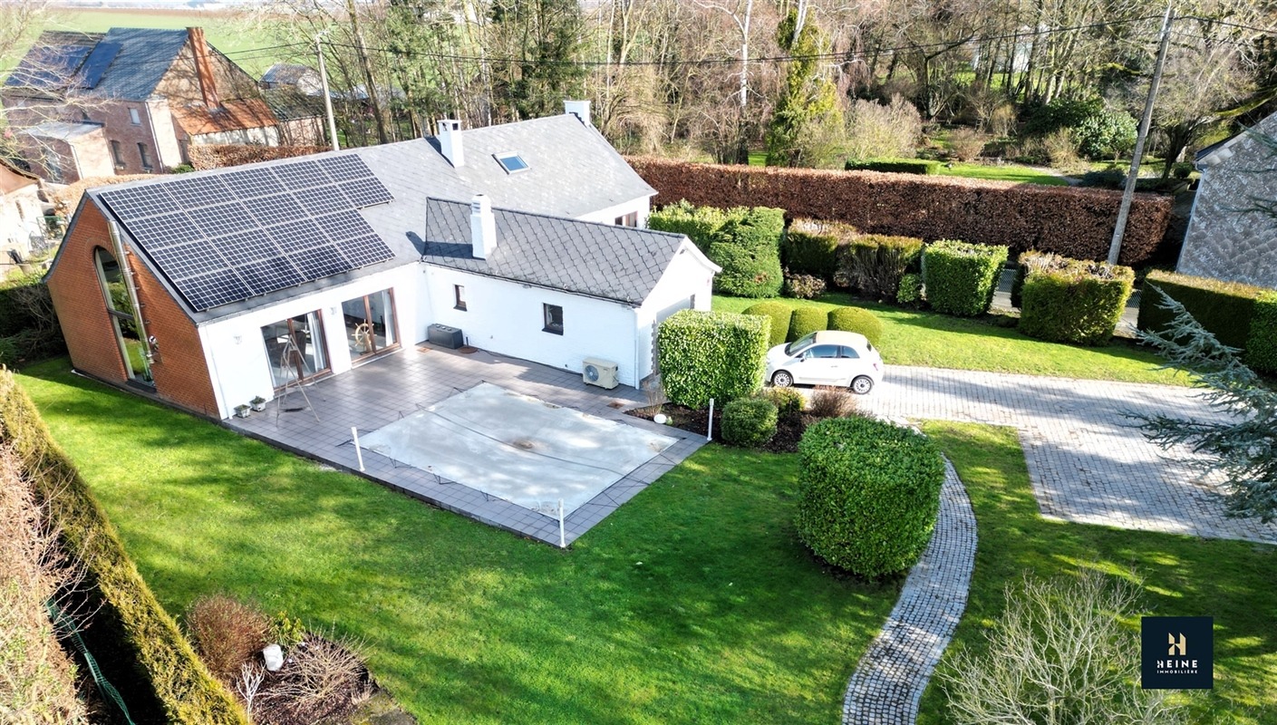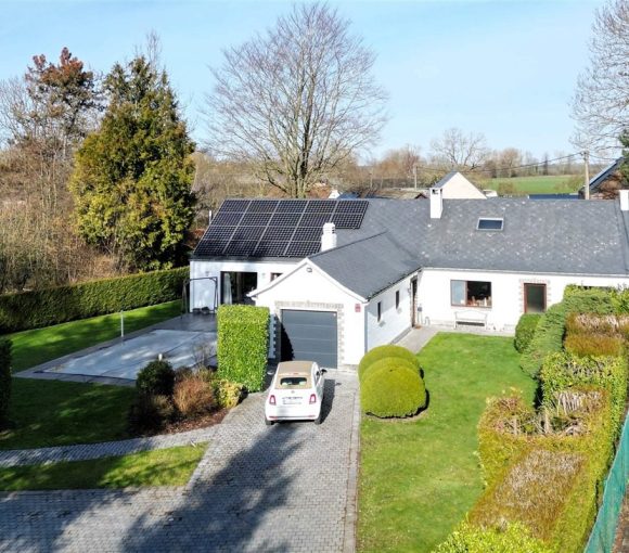 Idéalement située dans le village de Forville, proche de toutes commodités (commerces, écoles, E42, bus…) charmante villa 4 façades implantée sur un superbe terrain plat de 16a18ca joliment arboré et clôturé. Elle se compose au RDC, d’un hall d’entrée avec WC séparé, deux spacieux séjours dont un de +/- 50m² avec K7 à bois et l’autre avec K7 à pellets, une cuisine-équipée ainsi qu’une salle de bain, une chambre et un bureau aménageable en chambre. Au premier étage, une chambre, deux dressings et une mezzanine offrant des possibilités d’aménagement. Un garage, une piscine avec PAC, un atelier, un abri de jardin et des combles terminent sa description. Niveau équipements: Électricité monohoraire (non conforme); 18 panneaux photovoltaïques; CC mazout + K7 à bois + K7 à pellets; Châssis DV bois; Toiture en ardoises artificielles. A la recherche d’une villa 4 façades bien située, elle est à visiter. PEB: C.