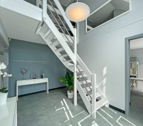 Dès l’entrée, vous serez séduits par le hall baigné de lumière et son escalier design, donnant le ton d’une habitation pensée avec goût.